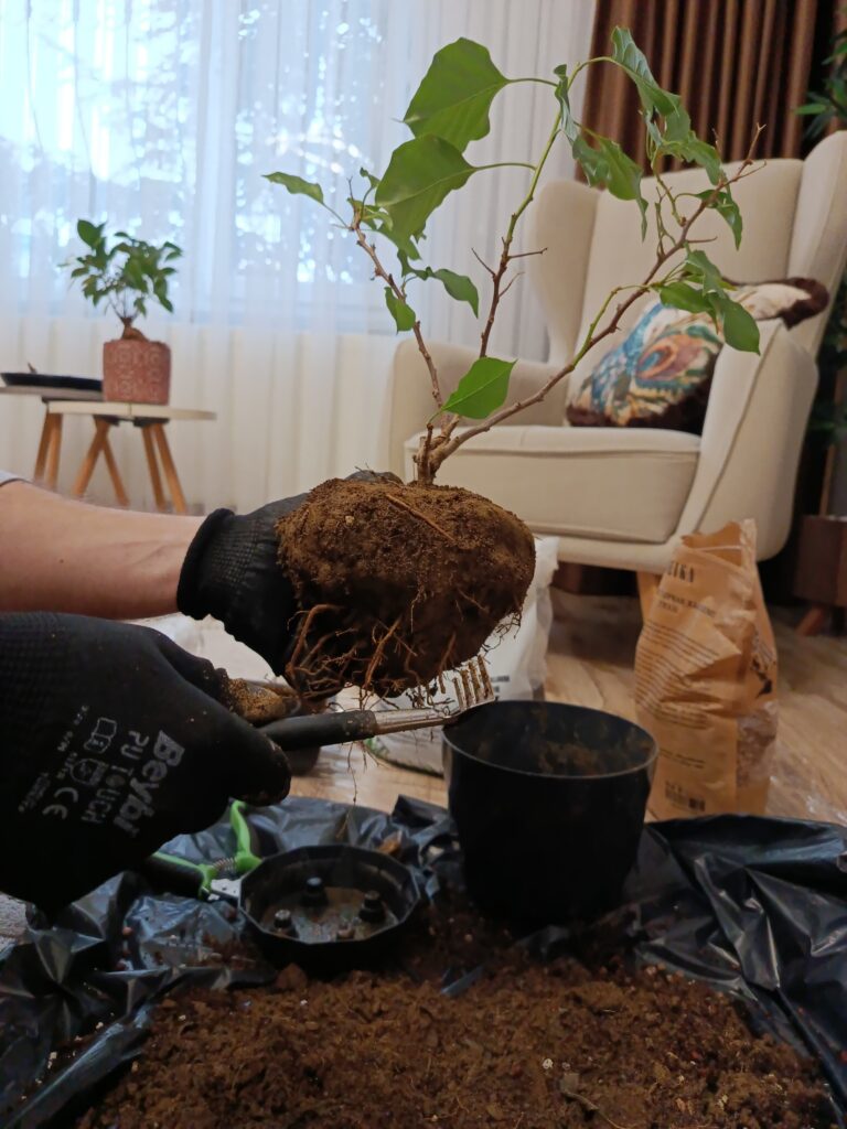 Saksıyı büyütme sebebim; henüz ağacım final formunda değil. Fark ettim ki; küçük saksıda kökler sarıldıkça ağaç bir noktada düğümleniyor, yaprakları yeterince besleyemiyor. Daha fazla kılcal kök, daha güçlü bir gelecek demek.